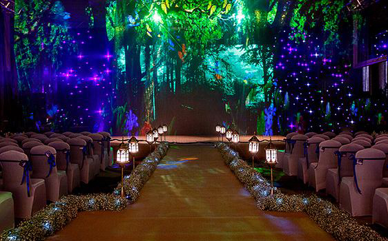 如有品牌活動,則新媒體藝術白墻+7部投影機將營造出獨特的氛圍,下圖為瑞士頂級奢華腕表及珠寶品牌蕭邦(Chopard)舉辦的晚宴場景。
